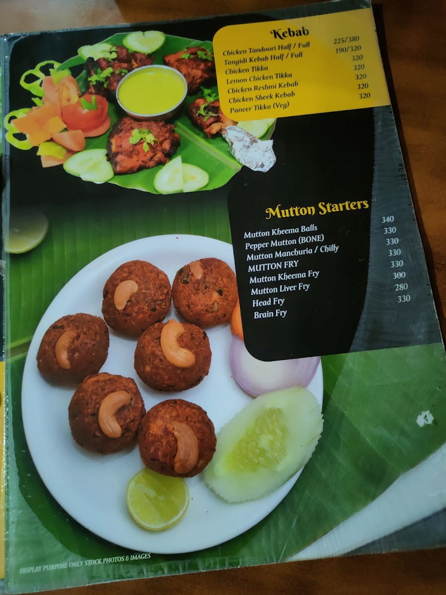 The menu features an impressive selection of kebabs, including the savory Chicken Tandoori and Chicken Reshmi Kebab, both radiating warmth and taste. Starters like Mutton Kheema Balls and Pepper Mutton offer a delightful introduction to the rich, diverse offerings.